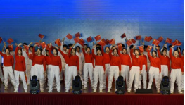 大会在活力四射、节奏欢快的歌舞节目《青春筑梦未来》中拉开帷幕。