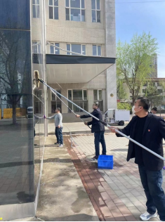 组织党员干部积极参加“美化环境,服务师生”志愿服务活动。第一党支部针对近期教室勤工俭学学生人手不足、教室卫生打扫不及时的问题,组织支部全体党员对教学综合楼个别教室进行卫生打扫,为师生营造洁净舒适、优美宜人的学习工作环境。第三党支部全体党员对美食城玻璃幕外墙进行了全面的清洁,同志们齐心协力用两个多小时完成外墙的擦拭工作,使美食城外墙一尘不染、清洁如新。通过开展党员志愿服务活动,增强了基层党组织活力,使党员干部在实践中得到锻炼,进一步强化了服务师生意识。