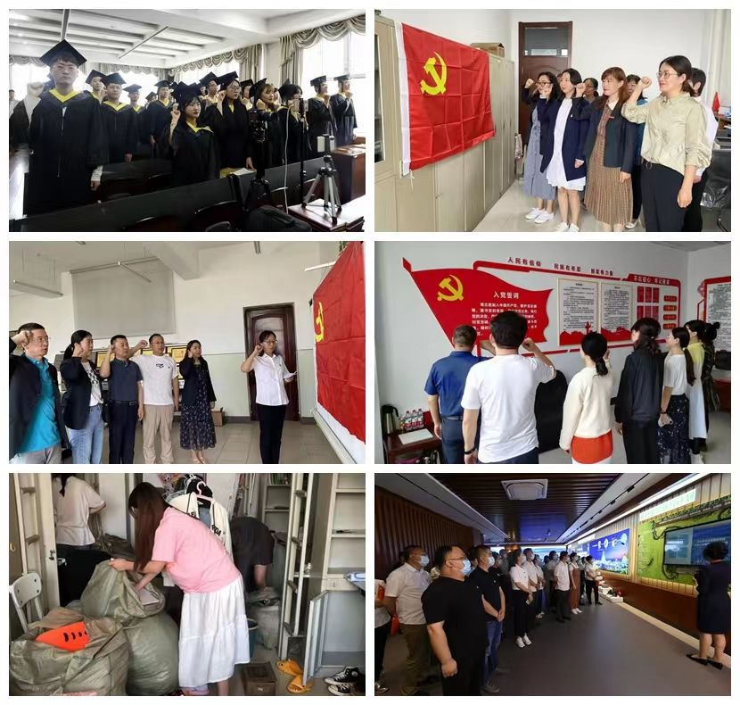 连日来,学校各基层党支部采用线上线下相结合的方式,开展了主题鲜明、形式多样、内容丰富的主题党日活动,再次学习习近平总书记在庆祝中国共产党成立100周年大会上的重要讲话精神,进一步坚定了广大共产党员弘扬光荣传统、赓续红色血脉的理想信念,激发了全体党员干事创业的责任感和使命感。深入开展新党员入党宣誓、老党员重温入党誓词、集体过“政治生日”活动,坚定理想信念,践行入党誓词,面对鲜红的党旗,用铿锵有力的声音,郑重许下铮铮誓言,表达对共产主义的坚定信仰,为实现中华民族伟大复兴矢志奋斗的信心和决心。